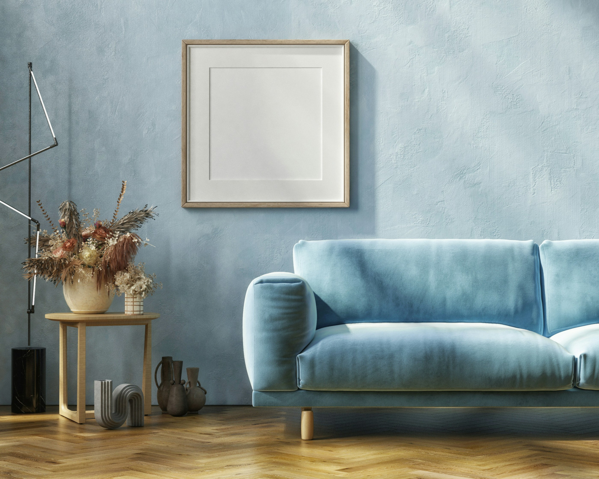 - Nordisk udtryk: Kombination af mørkegrå tekstil og lyst træ.